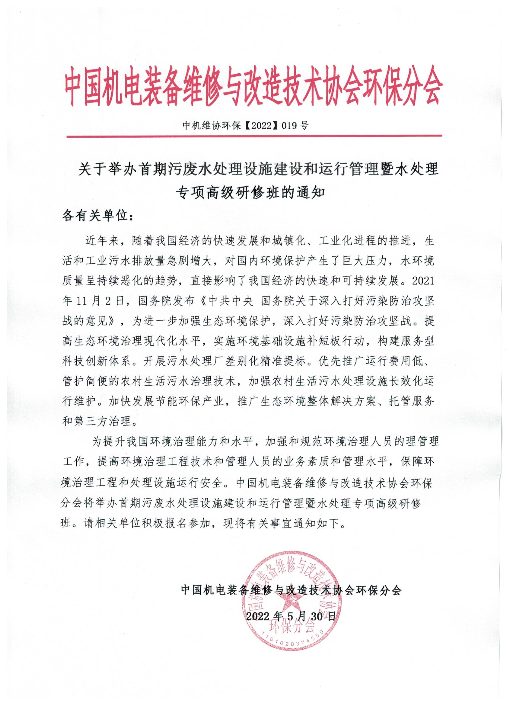 關(guān)于舉辦首期污廢水處理設(shè)施建設(shè)和運(yùn)行管理暨水處理專項(xiàng)高級(jí)研修班的通知!